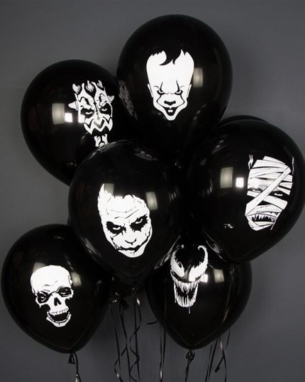 Одним из основных элементов декора на Хэллоуин являются шары в виде нарисованных на них ужасающих лиц, черепов, пауков и других монстров. Также популярны шары с изображением призраков, вампиров, зомби и других существ, связанных с мистикой и ужасами.