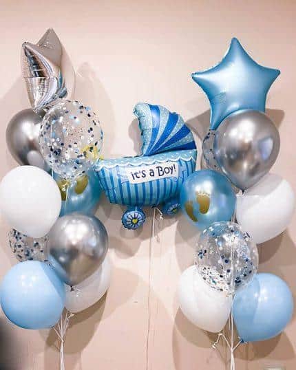 Если у родителей мальчика есть старшие дети, то воздушные шары могут стать отличным развлечением для них. Ребята смогут играть с шарами, делать из них разные фигуры, что поможет им заняться веселым и интересным занятием во время ожидания младенца.